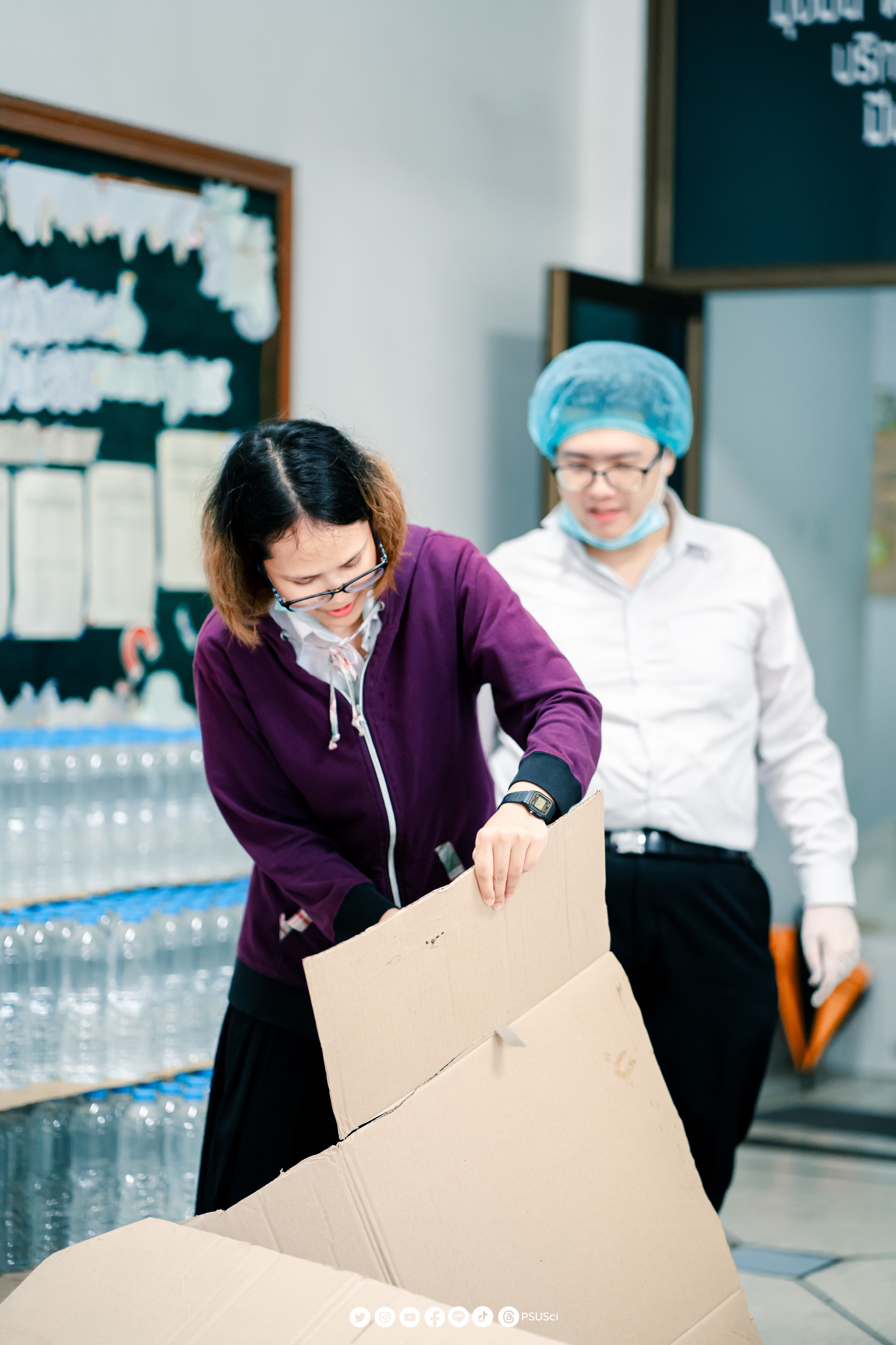 บุคลากรคณะวิทยาศาสตร์และทีมจิตอาสาร่วมกันบรรจุน้ำดื่มใส่ขวดเพื่อช่วยเหลือน้ำท่วม 28/11/2567